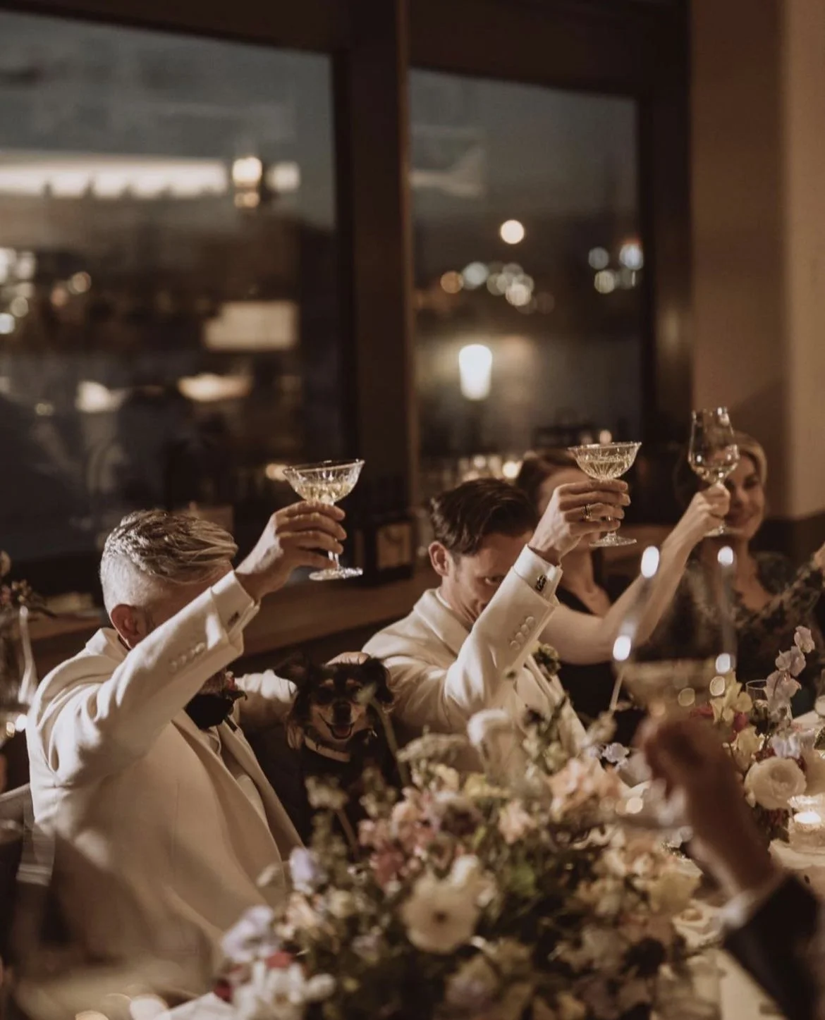 Couturier Edwin Oudshoorn samen met zijn man op hun huwelijk, beiden in een Boardroom Smoking op maat | Fotograaf: Divine Day Potography